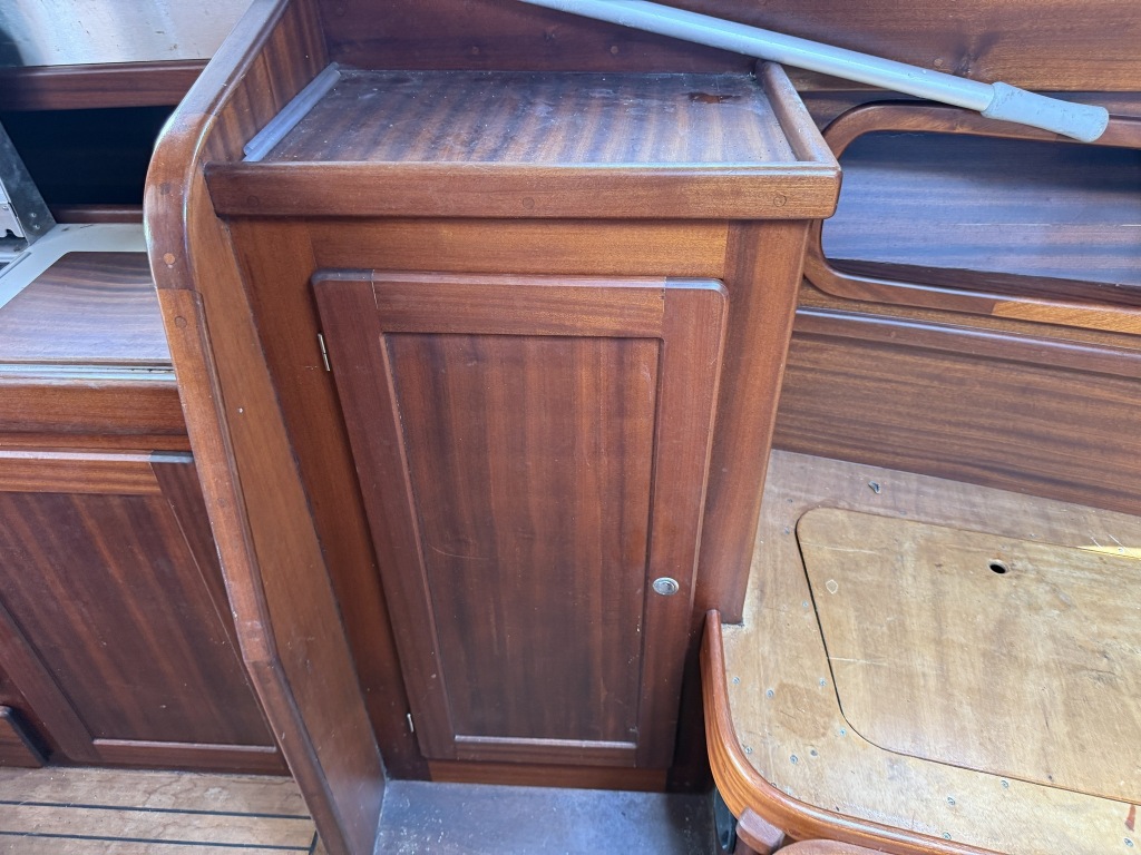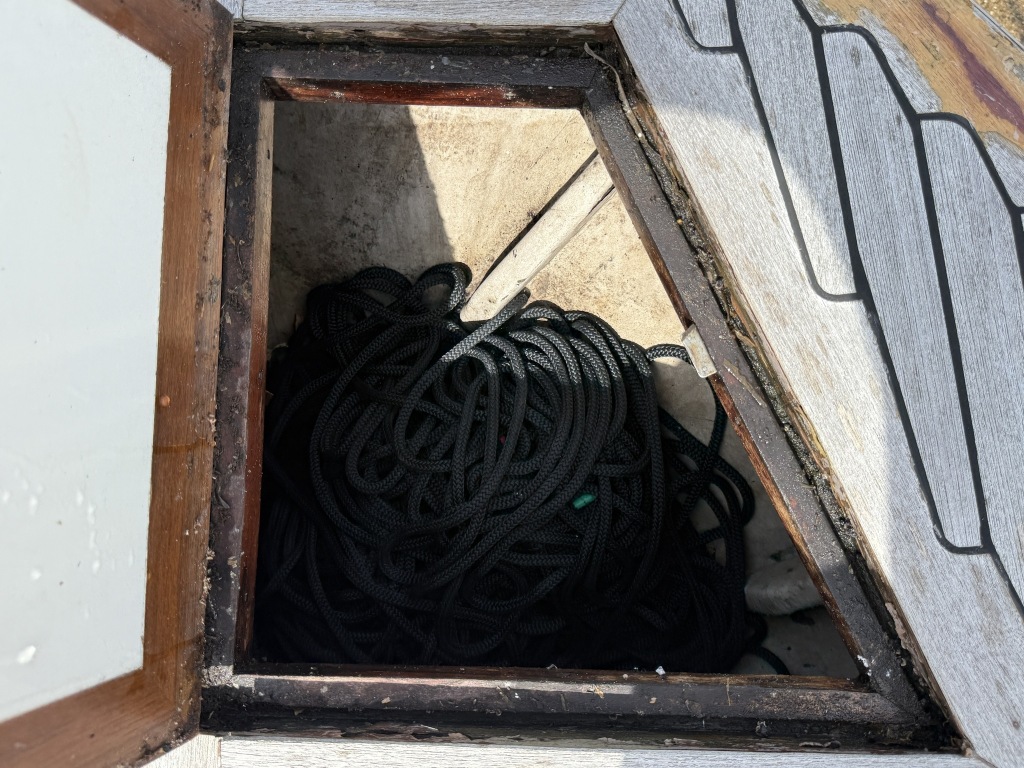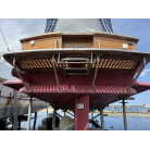 デッキ全体のチーク材のニスが剥がれていますので全体的に再塗装が必要です。