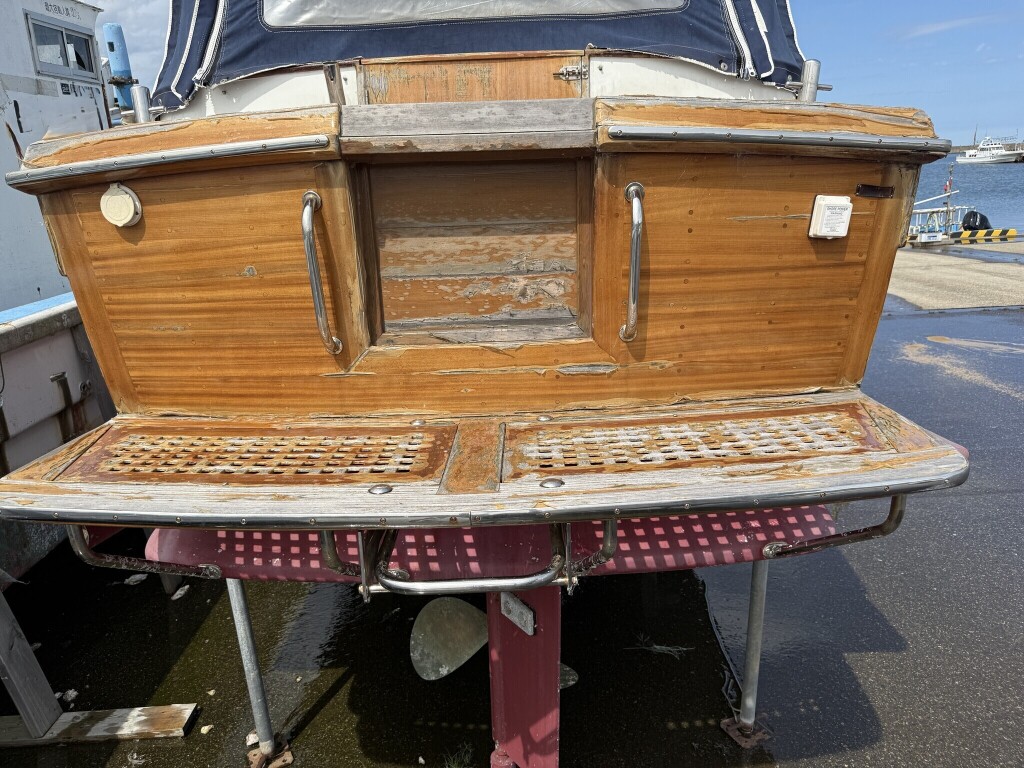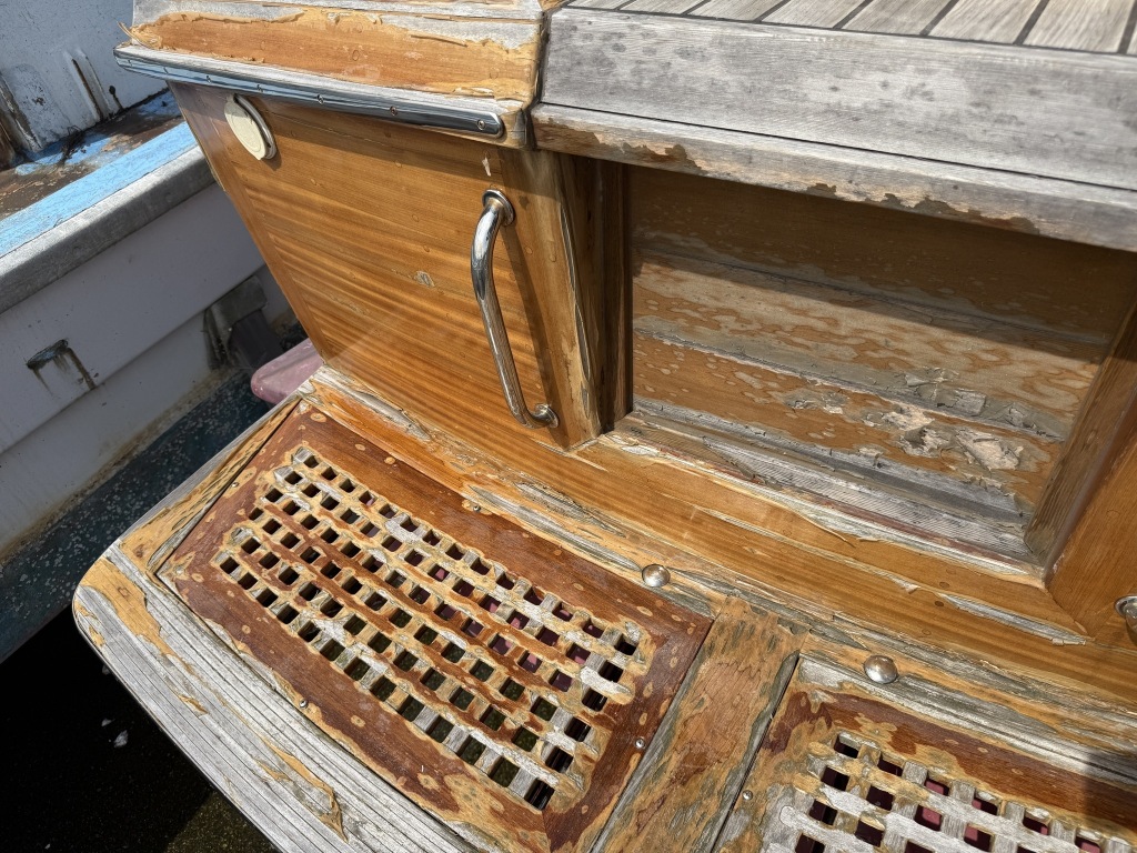 ハルの木目調のニスが剥げているところやガンネルにキズなどがありますが、その他に致命的なダメージはありませんでした。