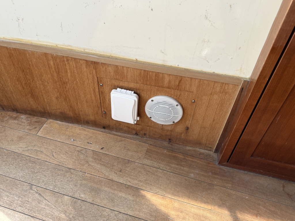 トランサムにシャワーヘッドが備え付けられていますが、エンジン換装時設置場所確保の為、清水タンクを取り外している為使用することは出来ません。