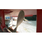 メーターは稼働時間表示9800の中古を使い、現在は8809時間を示しています。3月にバッテリー4個交換、6月に消耗品交換をされたそうです。エンジンからのプーリーで1キロのダイナモ、ヒューガルポンプ、油圧を駆動させています。スタンチューブはシールスタン式で船底はブラケット式になっており、巡行で約15、最高で約21位で使用されています。