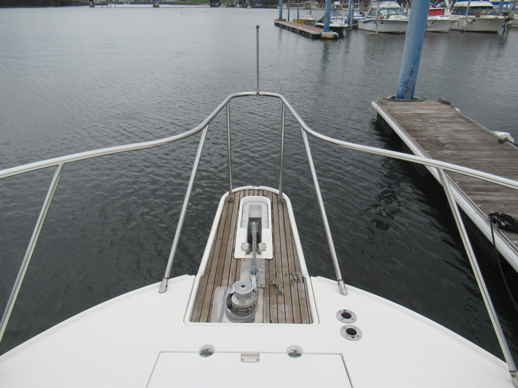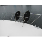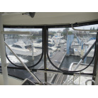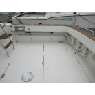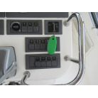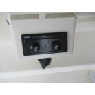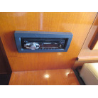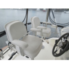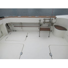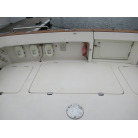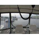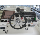 後部は操船席で、GPS魚探、オートパイロット、バウスラスタースイッチ、水温計、拡声器が装備されております。