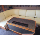 右舷側に4人が座れるソファシート、左舷側に5人程が座れるソファシートとテーブルが装備されております。