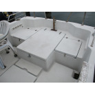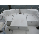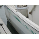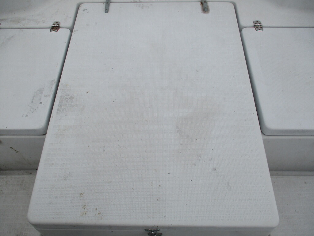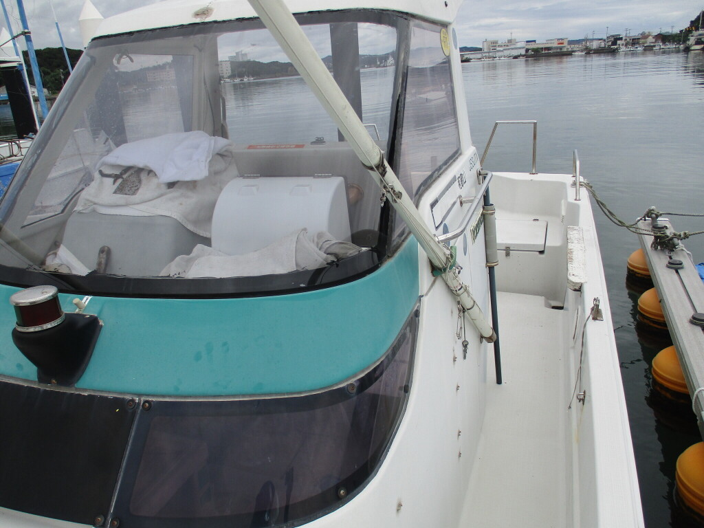 船体は全体的に仕様感がありデッキ部分のブアブア感はありませんがキズ、ヤレなどは多数見受けられます。塗装のヤレも見えけられますのでバフ掛けなどすればある程度回復すると思います。エンジンは定期的にメンテナンスされており好調だそうです。仕様時間も3000時間程度とディーゼルエンジンとしてはまだまだこれから十分だと思います。ドライブは去年OHをし油圧チルトを新品交換、ベローズ、ブーツなども新品に交換されているそうです。ヤンマー製ドライブはチルトUPでほぼ水面に出す事が出来ますので係留保管の方でも問題ありません。