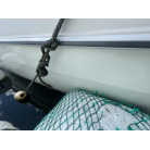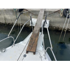 バウスプリットにはミンコタ(Riptideシリーズ)設置スペースがあり、24V電源配線や太陽光パネルによる充電システム(要メンテナンス)も整っています。