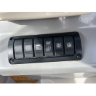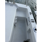 スターンデッキ側にはリール用電源が1か所設置され、2ステーション仕様で釣りの際にも操船しやすい構成です。