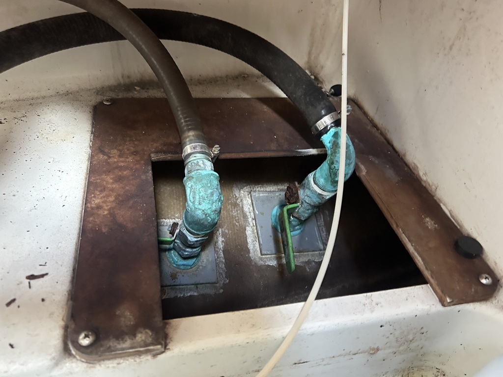 デッキ下にはエンジンルームまでの24V配線があり、経年劣化による錆・腐食も確認されています。