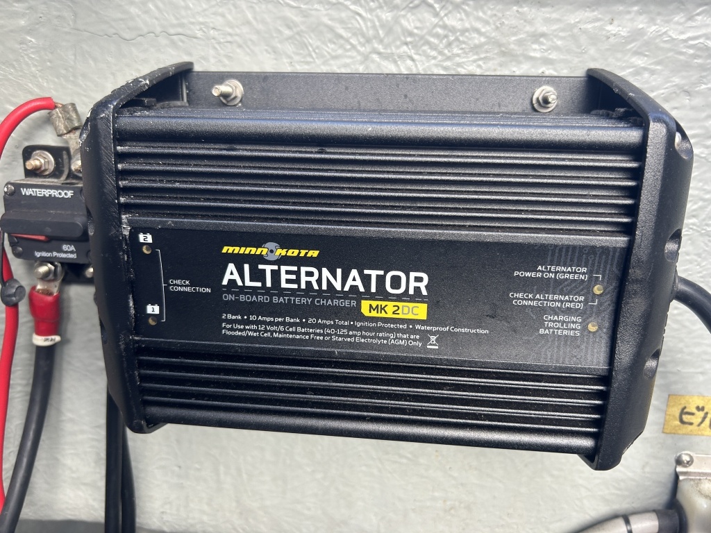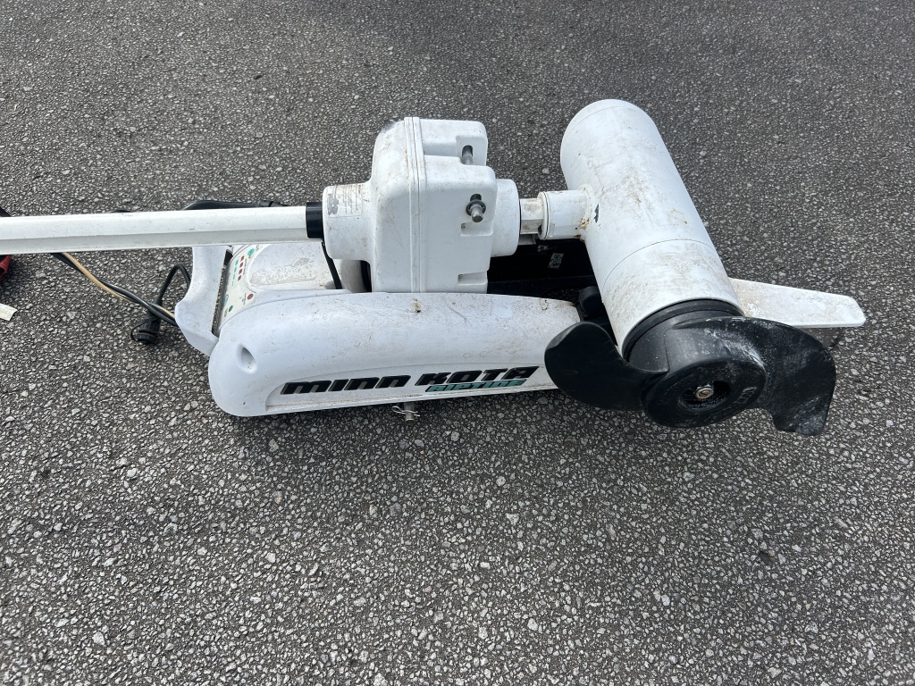 海水対応のミンコタ“リップタイド”シリーズを装備。塩害対策を施した高耐久モデルで、例としてGPSアンカー機能やネットワーク連携機能を備えたTerrova仕様もラインナップされています。現在、24 Vミンコタ用配線に経年劣化による通電不良が確認されており、メンテナンス要の状態です。