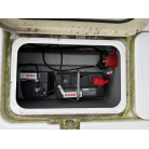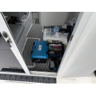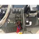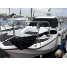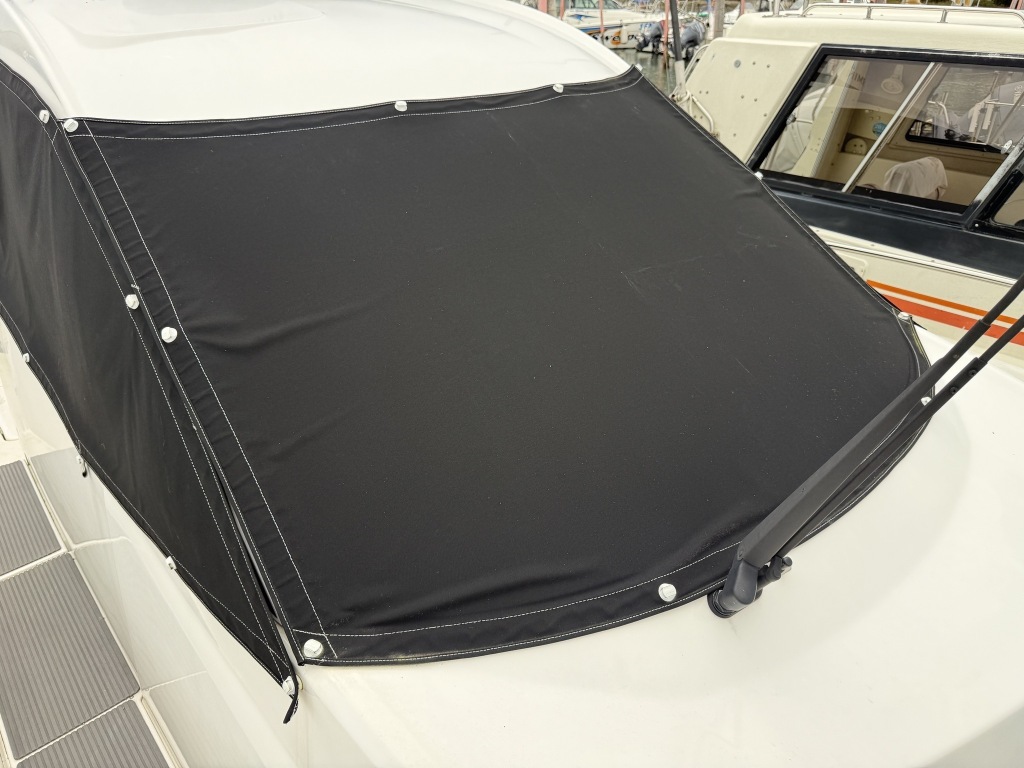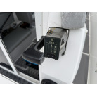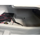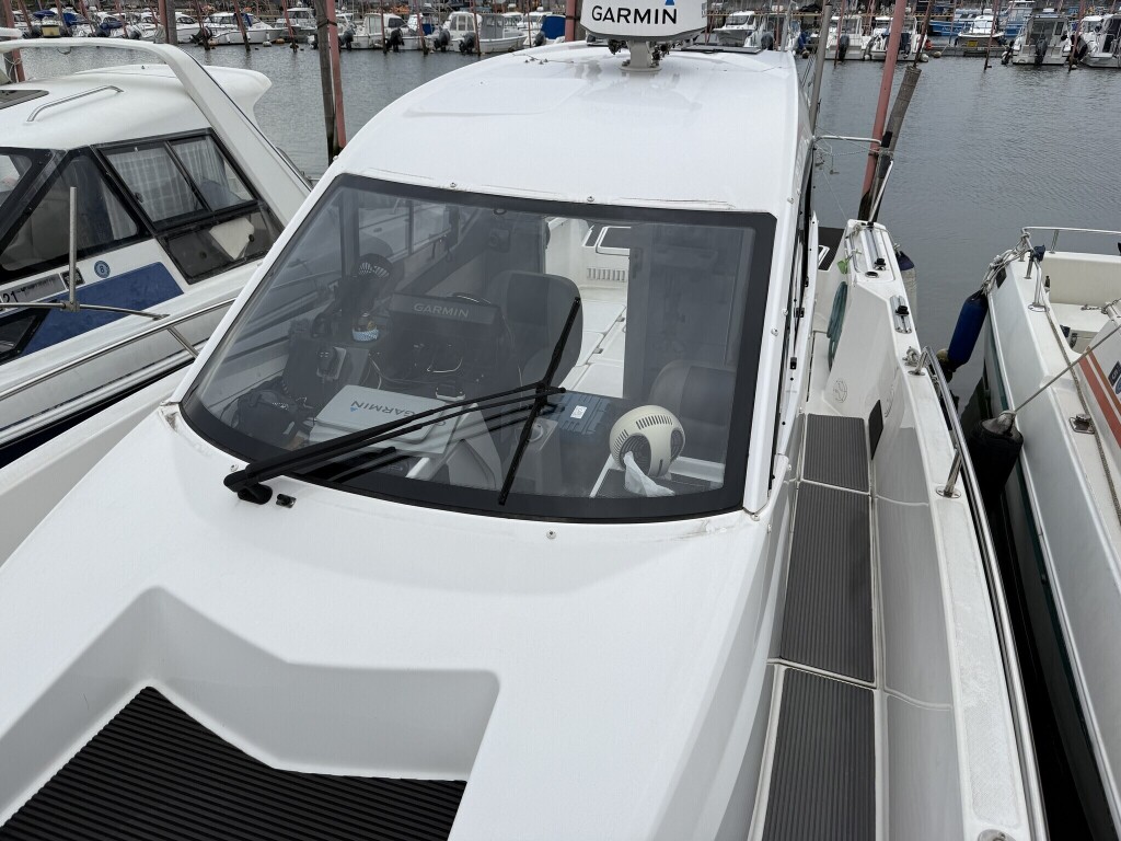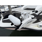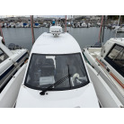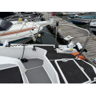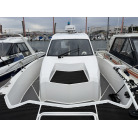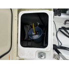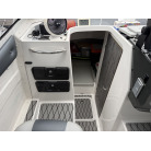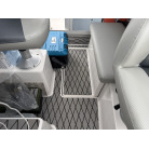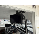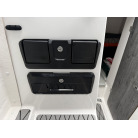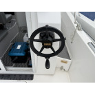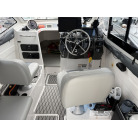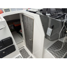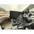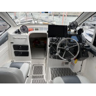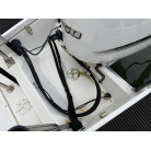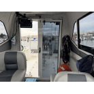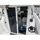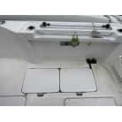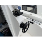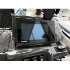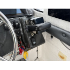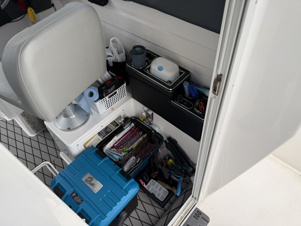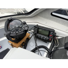 操船席周りの各種計器類は、GARMIN製GPS魚探(レーダー、ソナー)、マルチディスプレイ、無線機、コンパス、工場オプションのアクセサリーソケットなどが備え付けられていました。