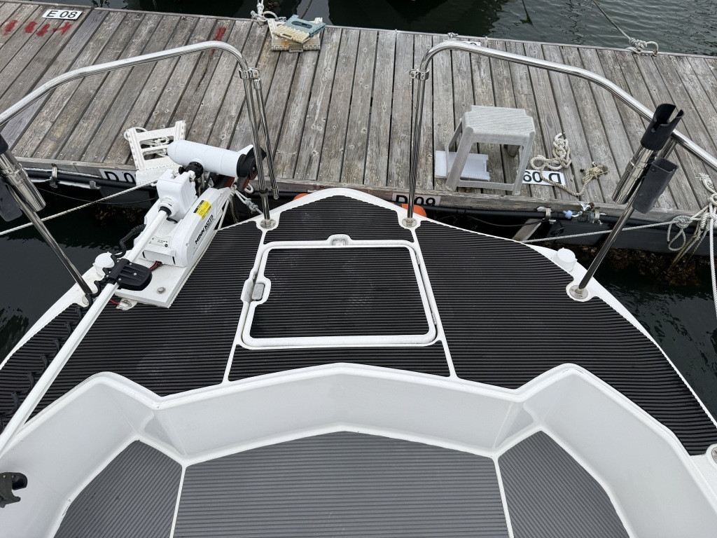 バウからアフトデッキに掛けて大型のハンドレールと、デッキシートが備え付けられていますので安全にデッキ移動する事が可能です。