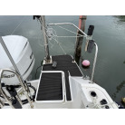 キャビン上部にはソーラーパネルが設置され、デッキ中央にはイケスがあります。