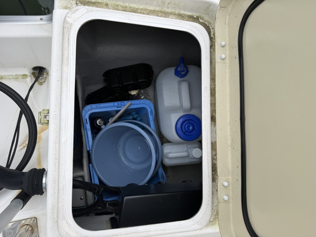 サイドウォーク下にはボートフックなどの長尺物を収納できるサイドストレージが備え付けられています。