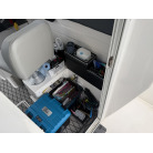 キャビン内には操船席以外にナビシート、2人掛けのパッセンジャーシートが配備され大人4名が着座することが出来ます。