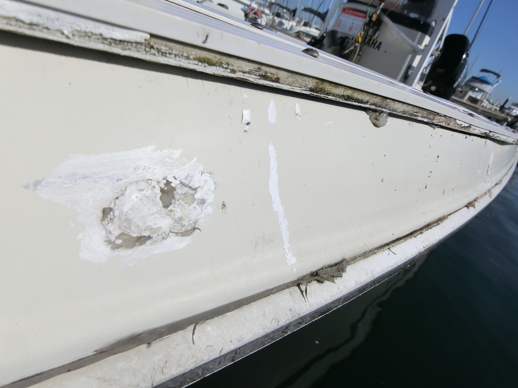 オーナーさんはいつも岸壁や防波堤ギリギリを攻める釣りをしていたそうですので、このようになってしまったようです。