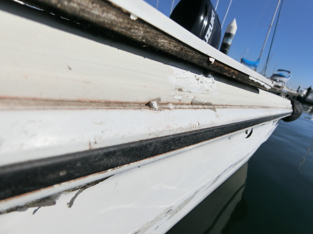 ガンネルとガンネル周りのFRPは、かなりキズが多く、状態は良くありません。