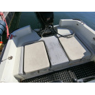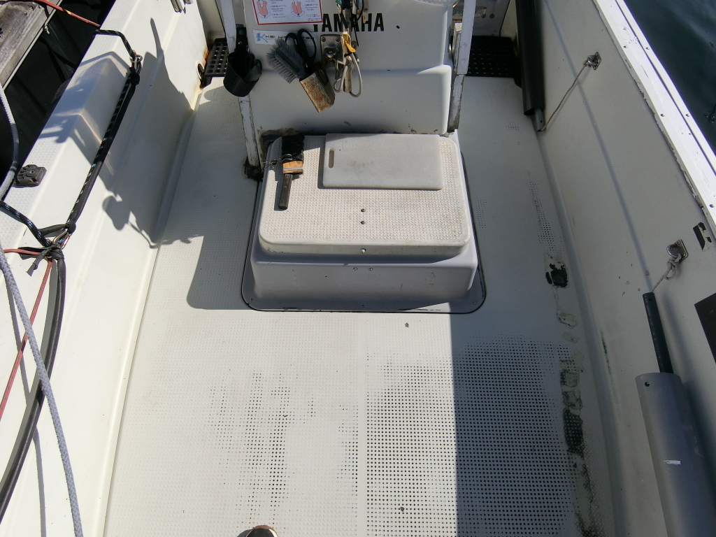 進水から26年以上経っていますので、さすがに船体はかなり使用感がありますが、エンジンは令和4年8月製造モデルの4ストロークのスズキ船外機に載せ替えられており、使用時間もまだ670時間くらいだと思われます。(使用時間はマルチファンクションメーターの動きから算出しています。)