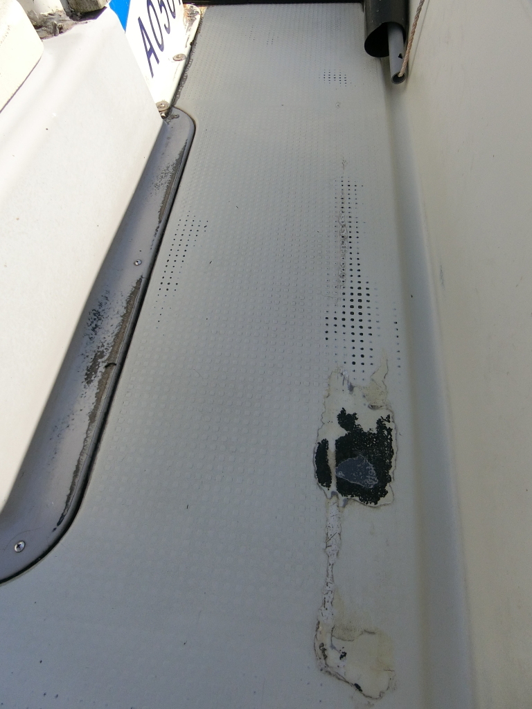 良く歩く場所は、表面に擦れが見られますが、デッキ上でブカブカしたような個所は無く、使用に際しては問題無い筈です。