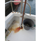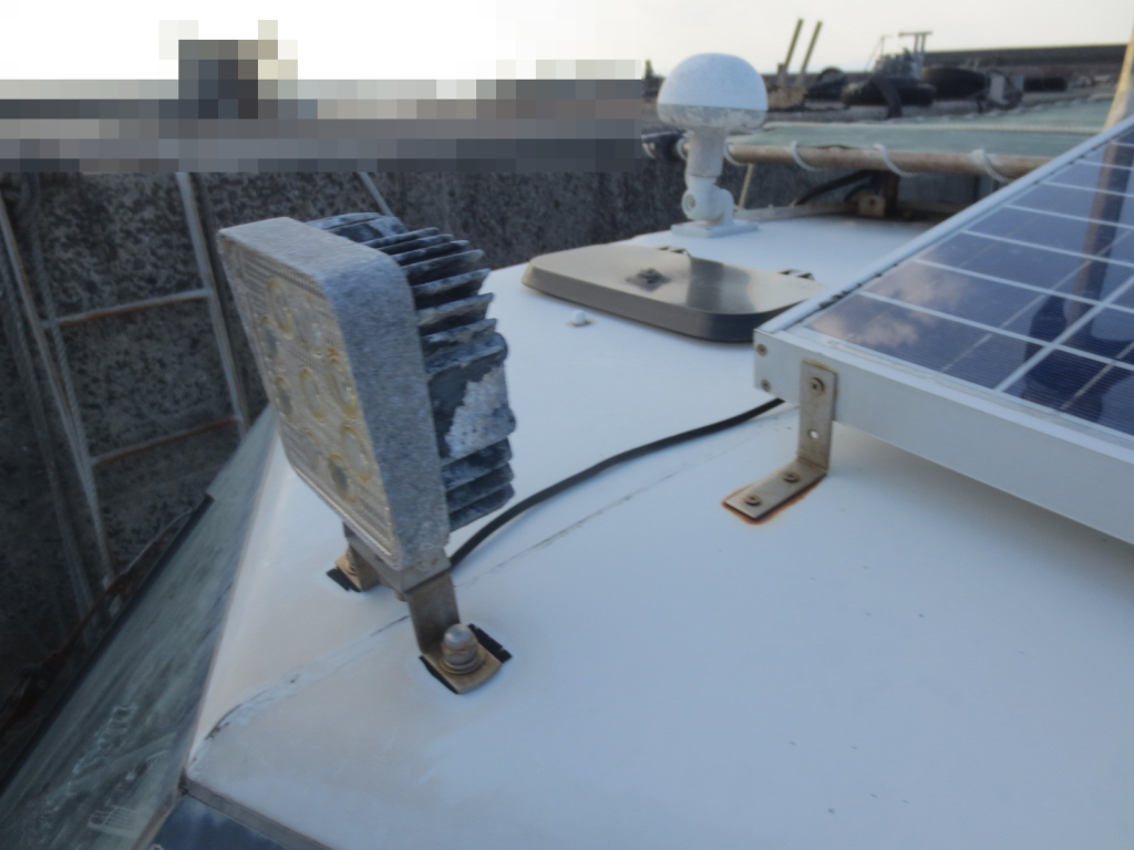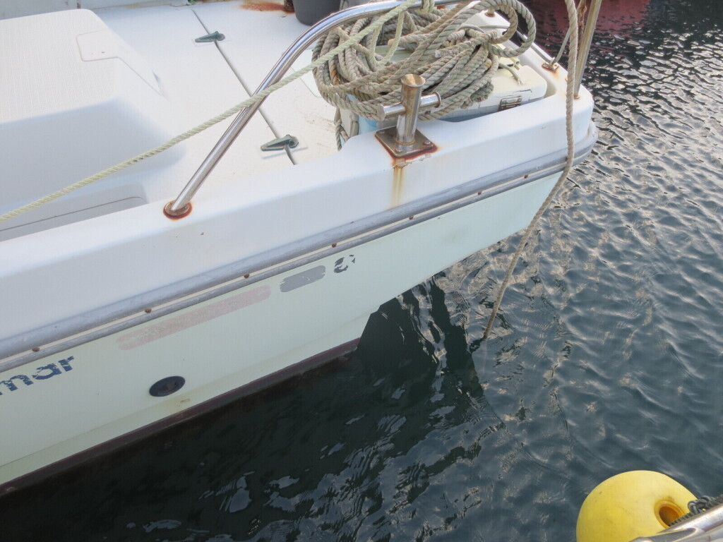 追加艤装されたオーニングの脚部に腐食が見られます。簡単な要請津にて修理は可能かと思います。