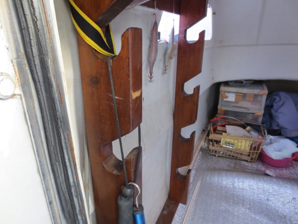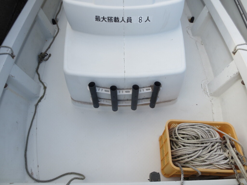 道具類は整頓され、船体も同じく綺麗に使われています。一部にFRP表面の割れ等がありますが蓋の欠損箇所や軟化箇所も無い感じです。