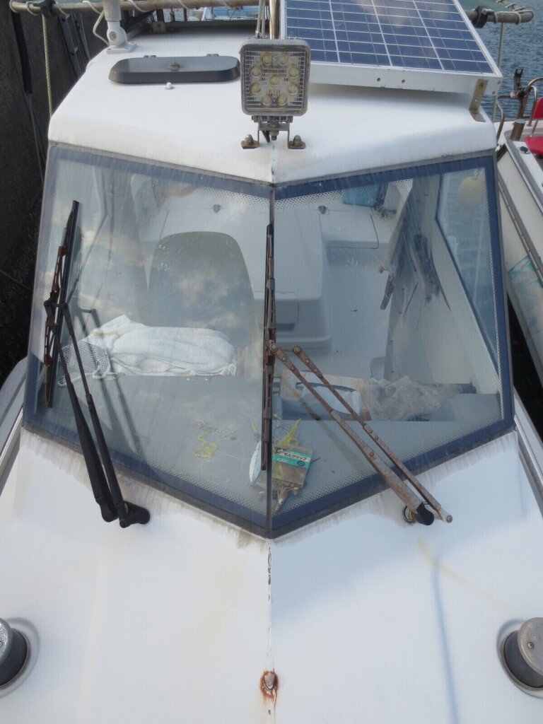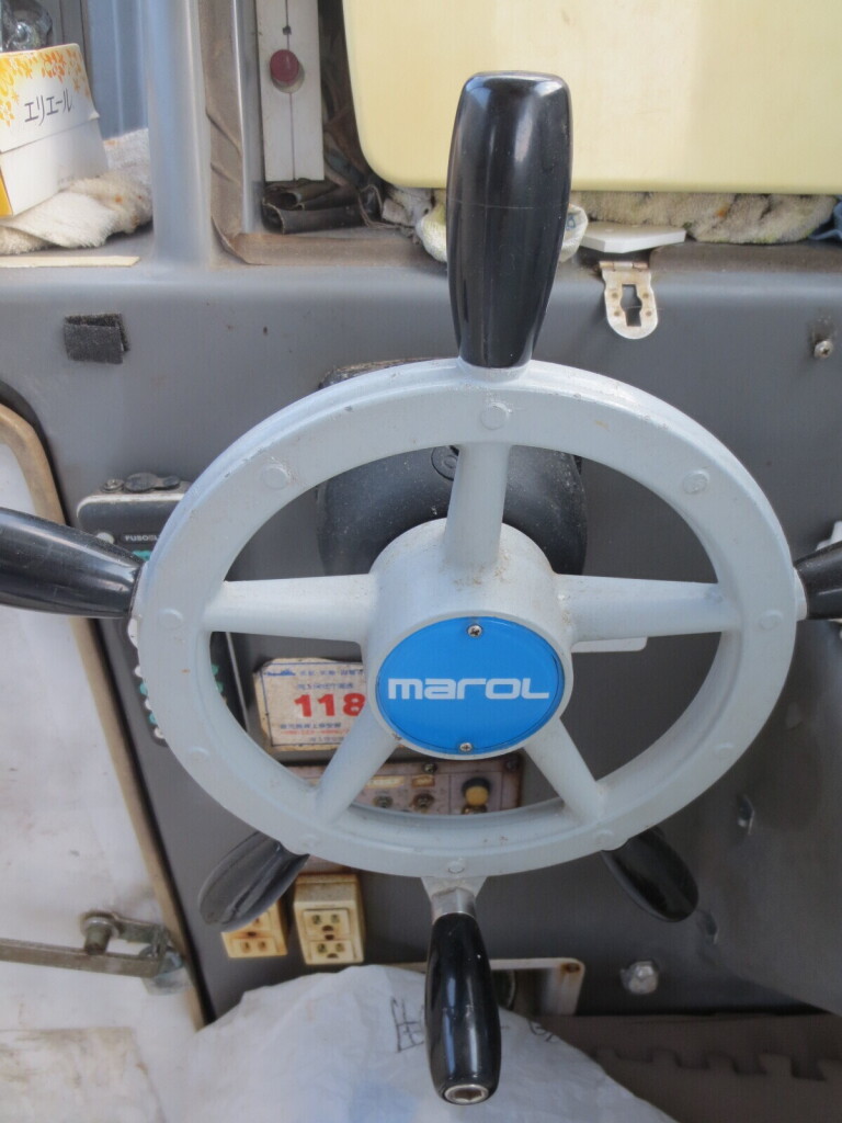 シンプルなメーター周りでGPSプロッターが装備されています。2レバーハンドルに油圧操舵。窓はガラス製の為、視界は良好です。