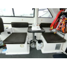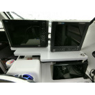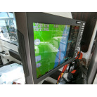 2ステーションで目線の高さにリアモニターが設置、モニターを見ながらFSRやバウスラスターの操作も可能です。またリアモニターでも魚探操作を出来るそうです。