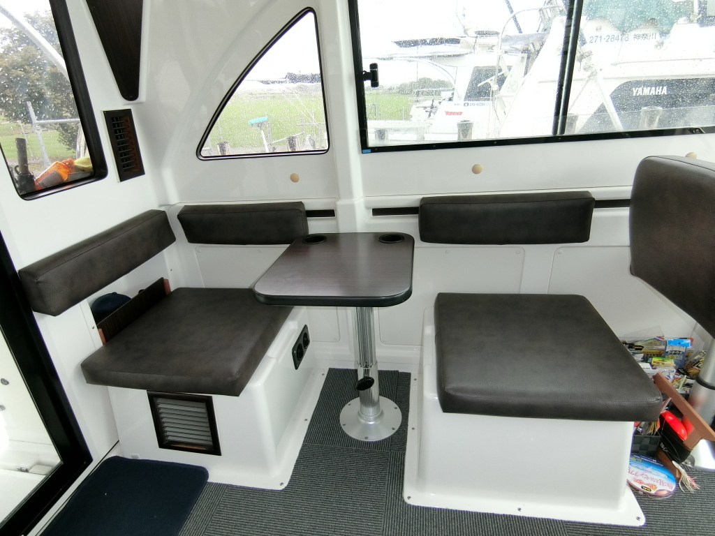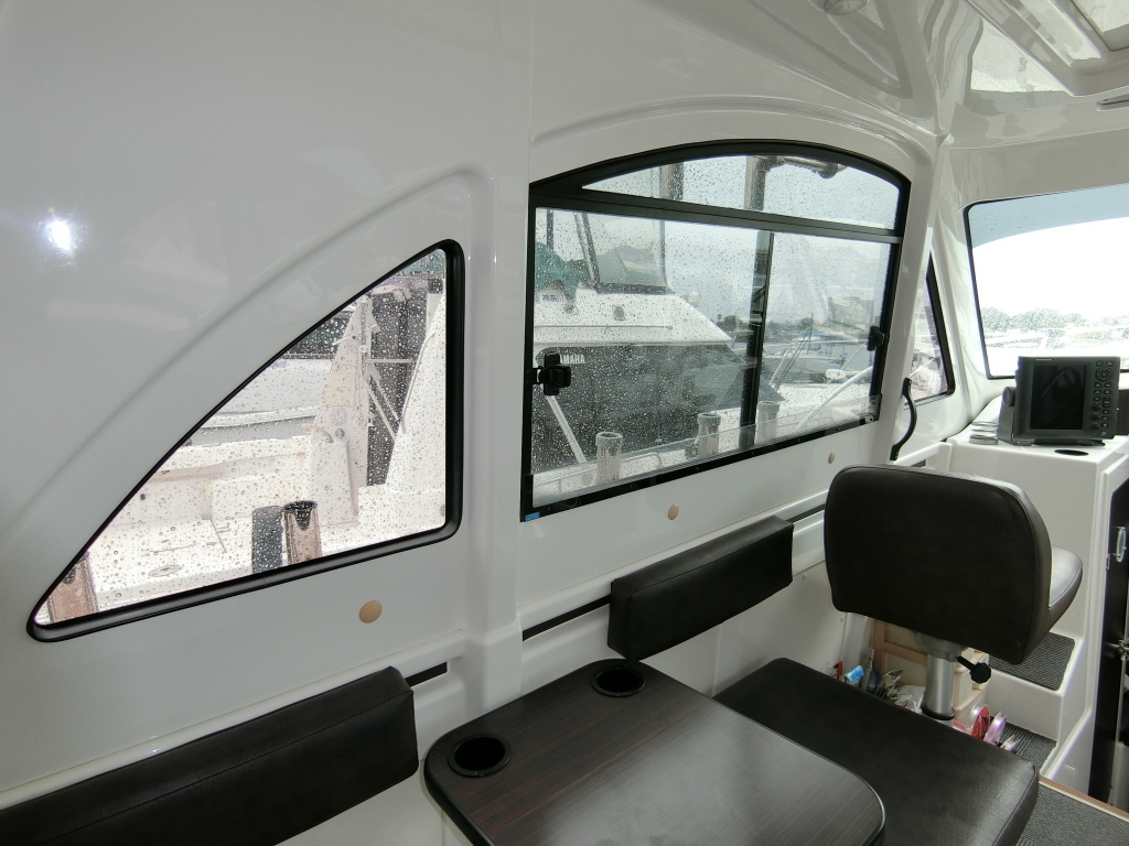 ・マリンエアコンを装備、窓ガラスにはフィルムを貼り付けしており快適な船室内です。
