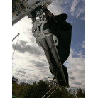 ・バウデッキにミンコタが設置されておりますが、こちらは次の艇で使うそうなので外されます。