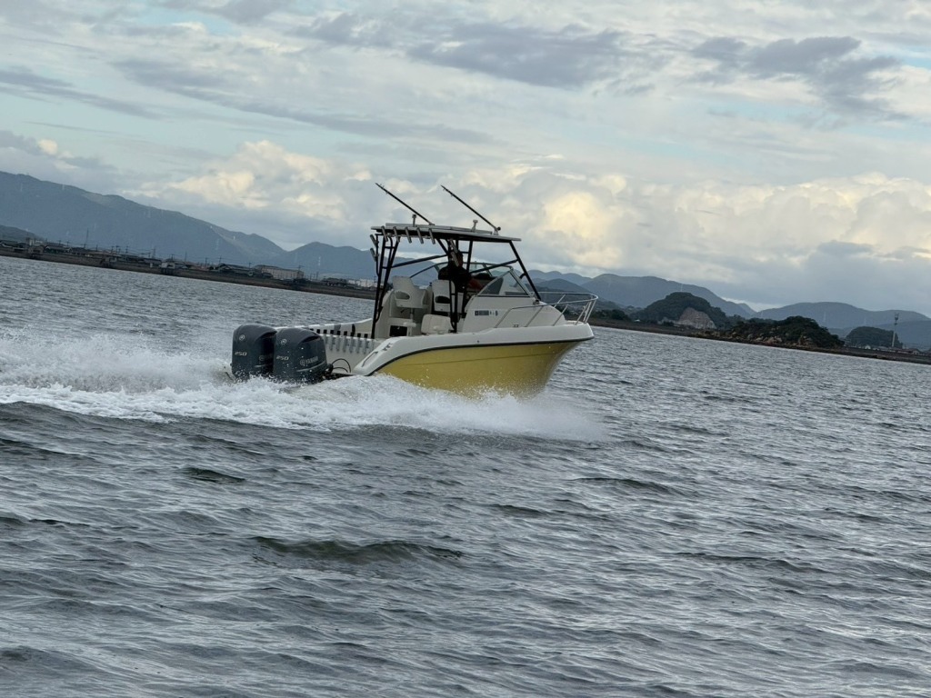 エンジンはヤマハの船外機まるまる馬力2機掛けでスピードも大変早く安心なていとなっております。