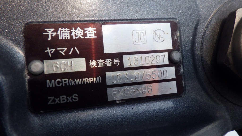 | 船検証記載馬力 | 220馬力 / 5,200rpm(回転数) | 推進機器種類 | 船外機 |