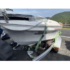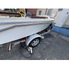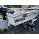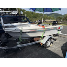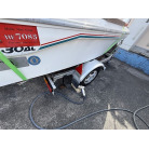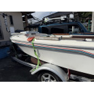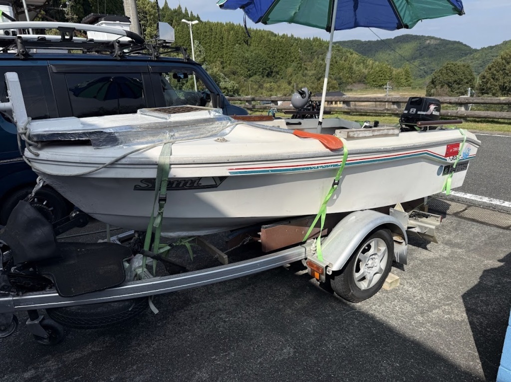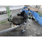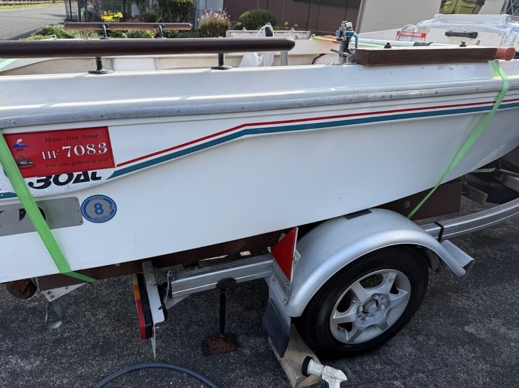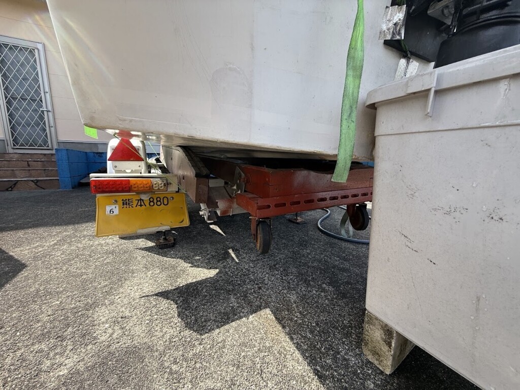 付属のボートトレーラーは、株式会社サンコーの平成11年式で最大積載量300KGまで対応しています。オーナー様が一人で簡単にボートを積めるように色々工夫されています。