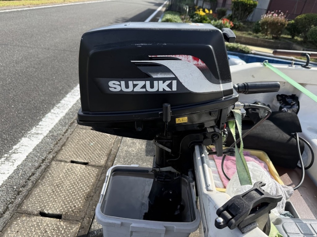 船外機は、スズキ2サイクル8馬力が搭載されており軽快に走ります。