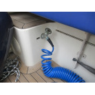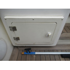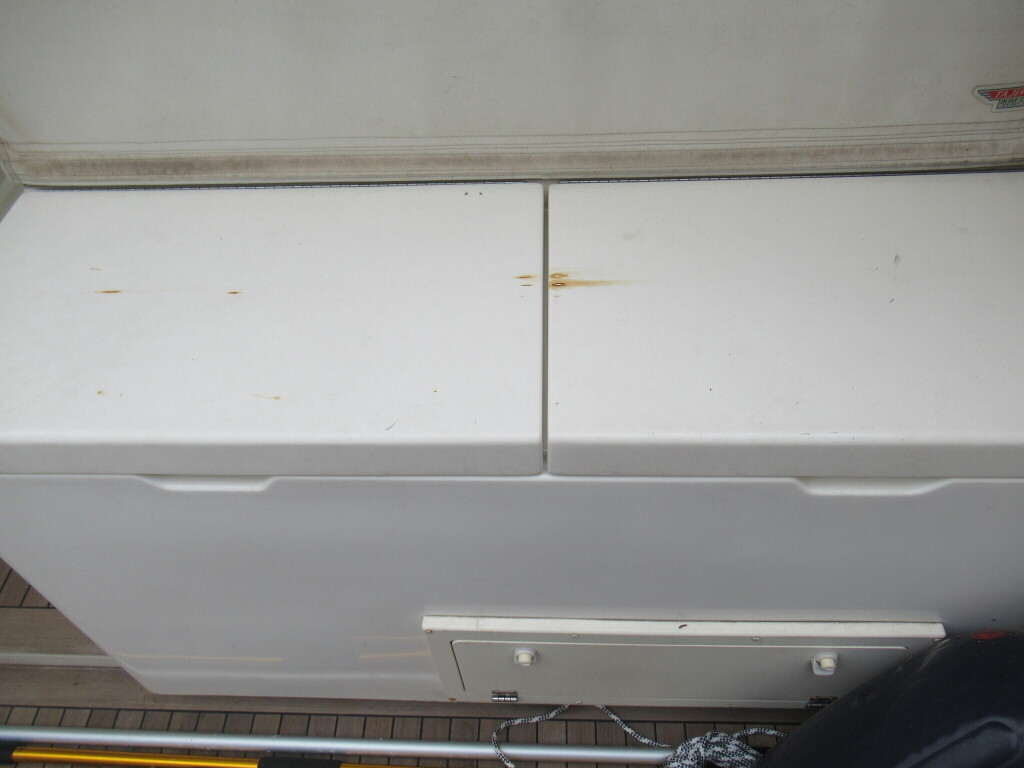 後部デッキの床はチーク材が張られており、後部デッキにはデッキライト、デッキシンク、デッキウオッシュ、陸電コンセント、イケスが装備されております。