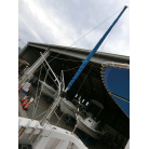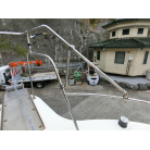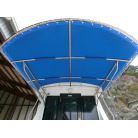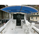 ・アフトデッキにはオーニングが取り付けられており、青い生地に劣化は少なく良好です。