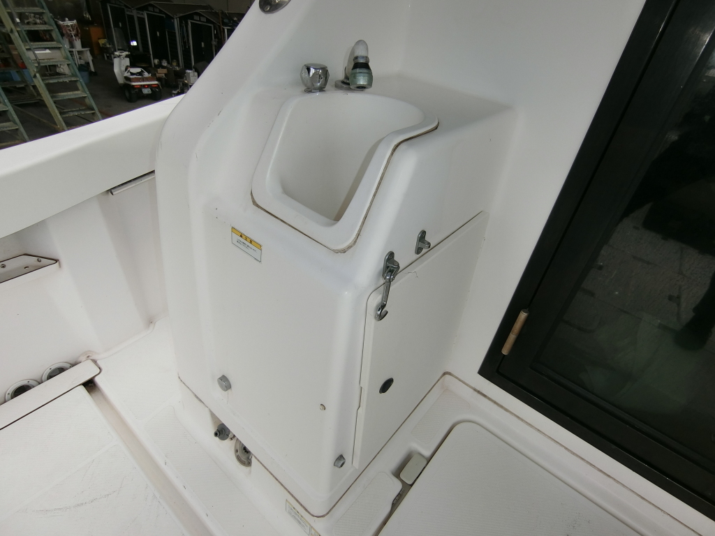 左舷側にはデッキシンクが備わります。釣行時等にデッキ上ですぐ水が使える事は何かと助かります。