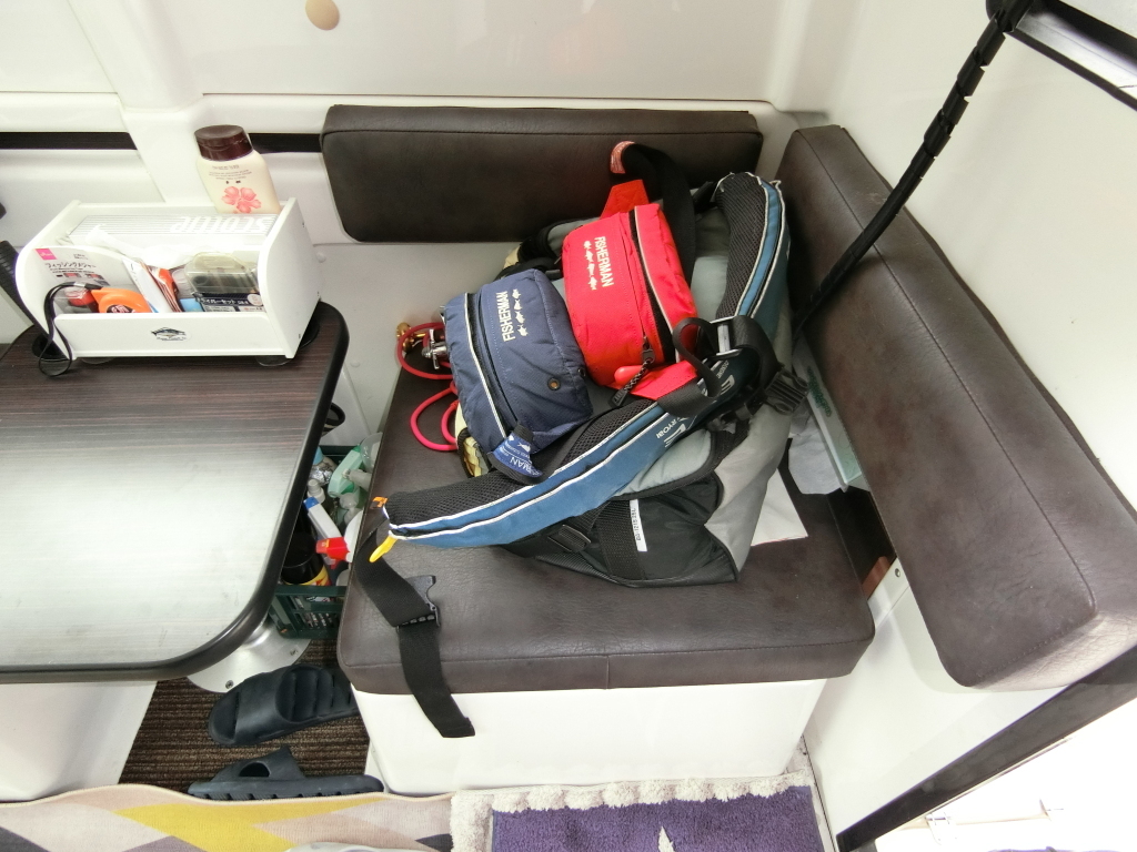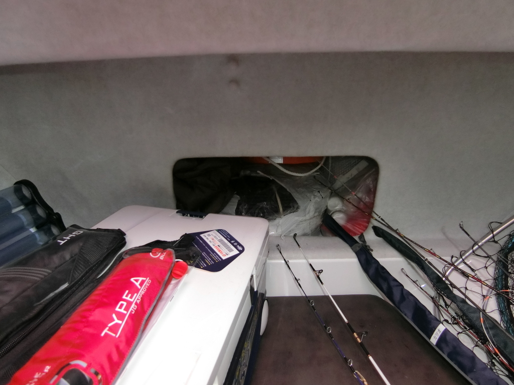 ・船室内は釣り道具が多数保管されており、頻繁に釣行されていた事がうかがえます。