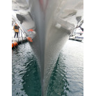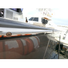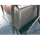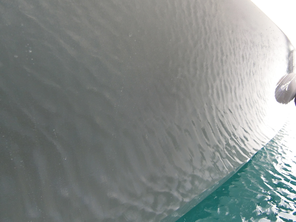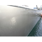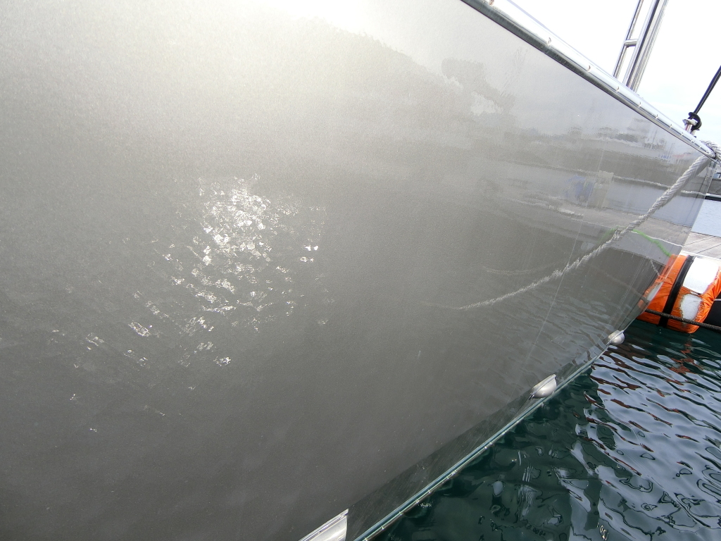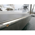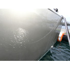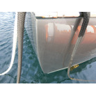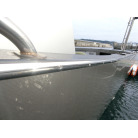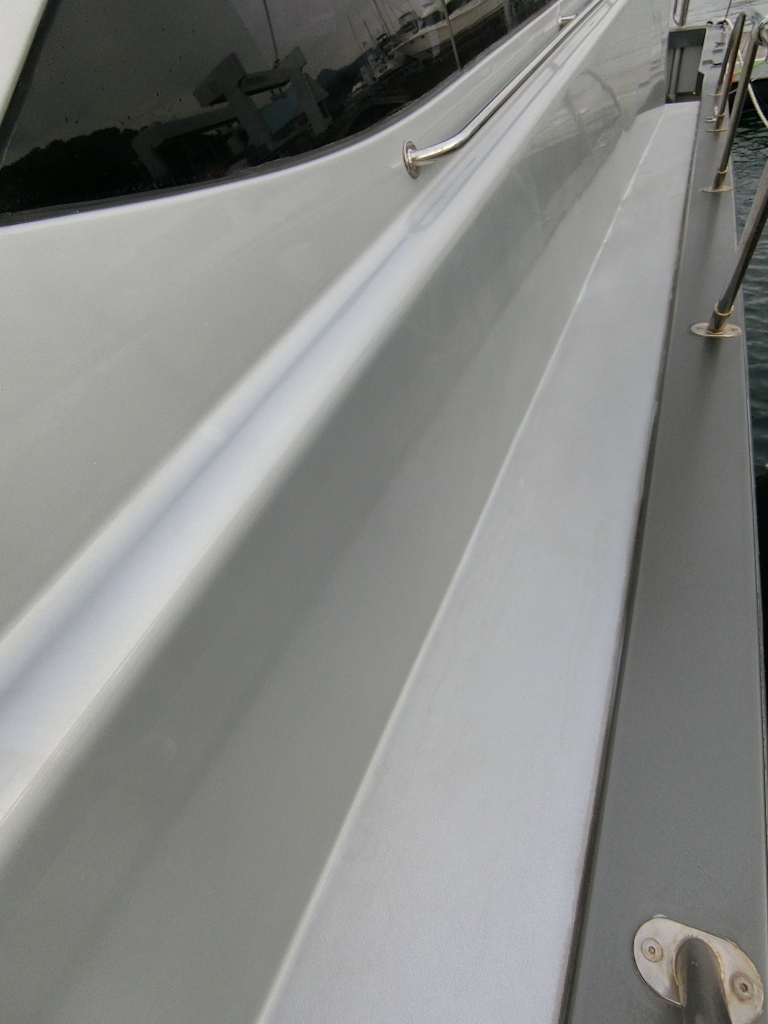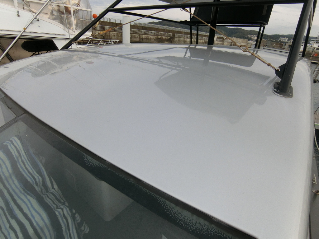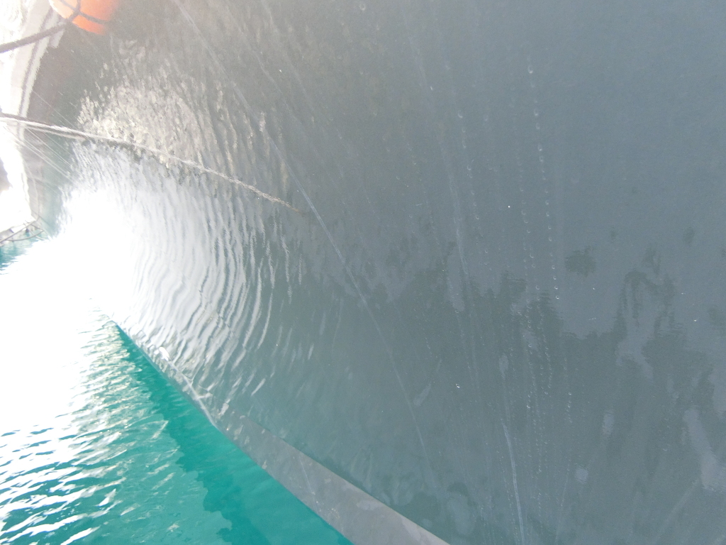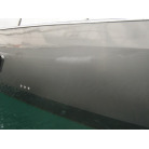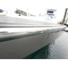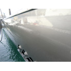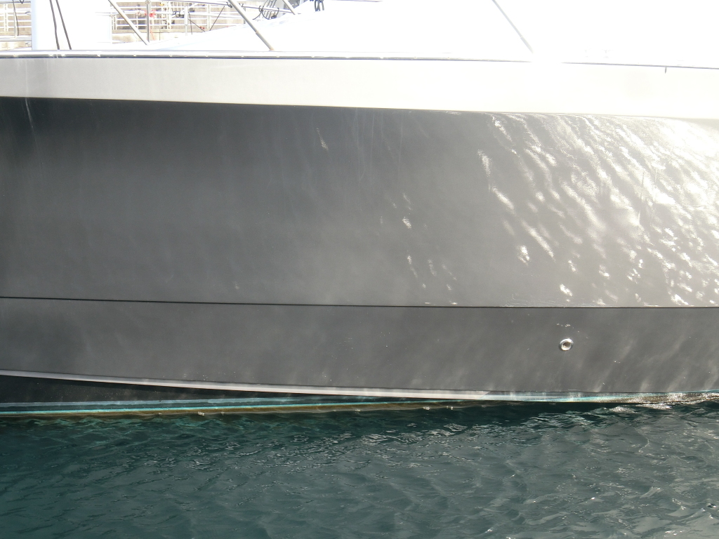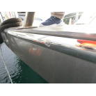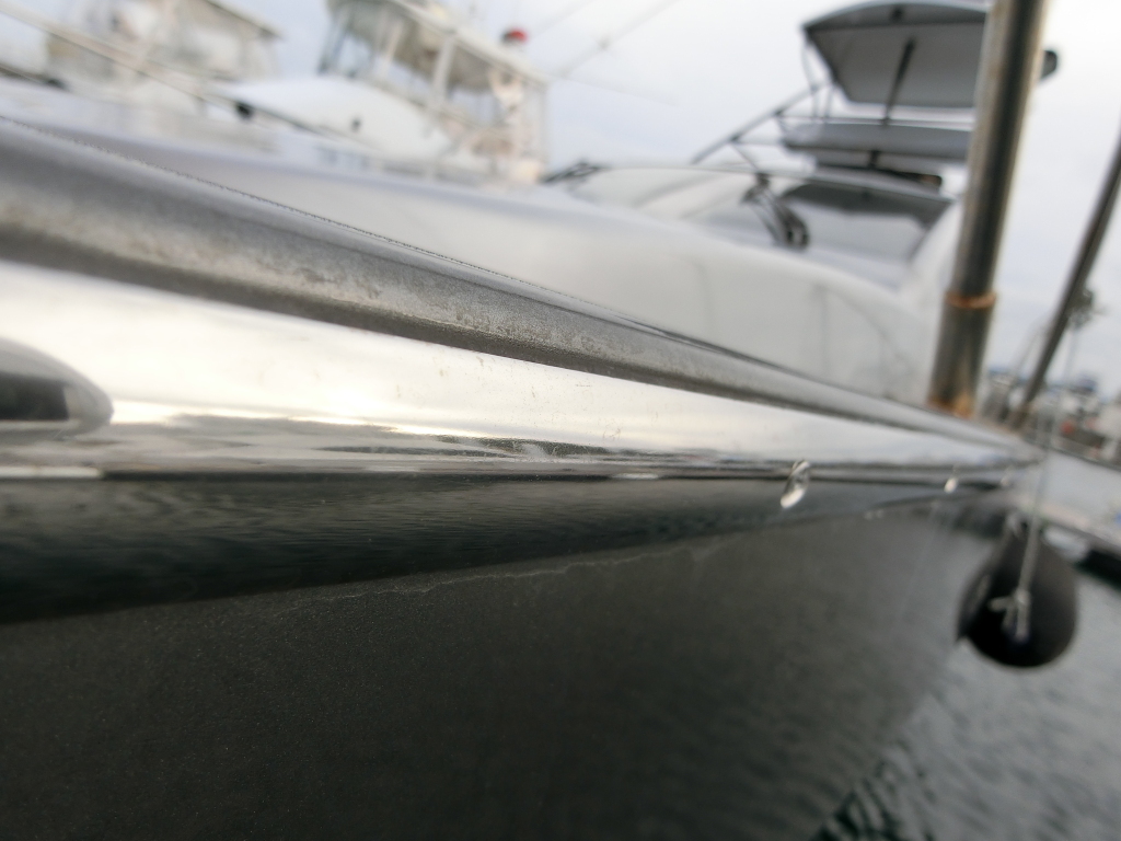ハル周りは、フェンダーの擦れキズや着岸の際に付いたと思われる浅いキズは散在していますが、係留状態で見る限り修復が必要な大きなキズや破損は見られません。