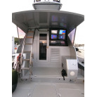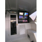 ・アフトデッキにはリアモニターが設置されており、2ステーションでモニターを見ながらコントローラーでの操船が可能です。