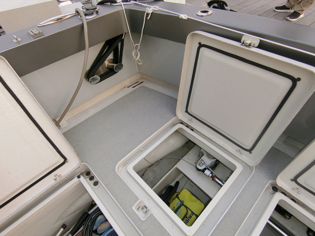 ・キャビンの出入口付近床下に15kw発電機(KOHLER製)、ジャイロスタビライザー(クイックジャイロ)が備わっております。