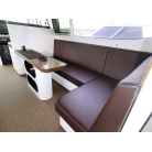 ・左右に合計10人程度が座れるような、座面が長いソファとテーブルが備わっており、大人数でも快適です。