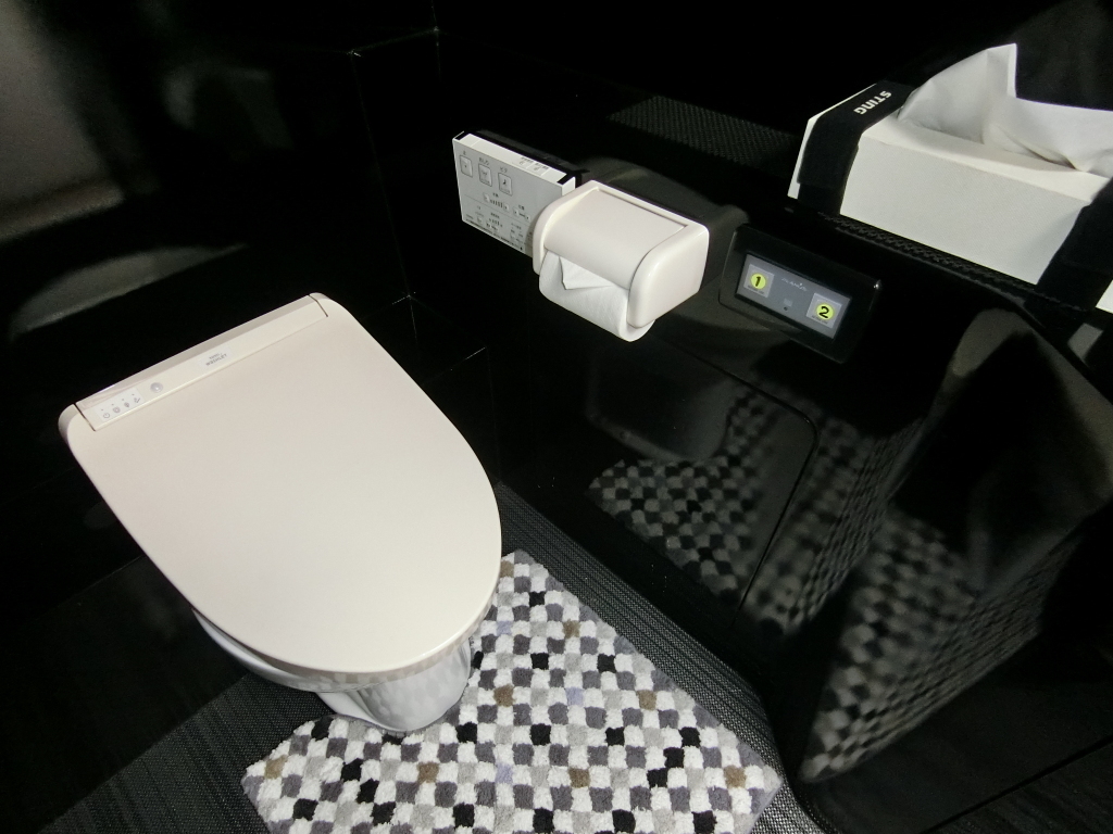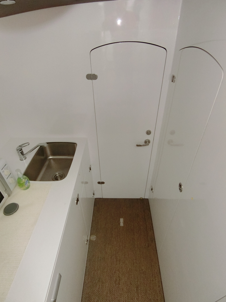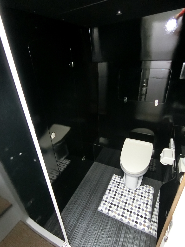 ・トイレ・シャワーはギャレー付近に配置されており、室内は清潔に保たれており黒基調の落ち着いた雰囲気の室内です。