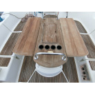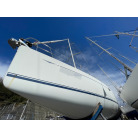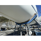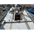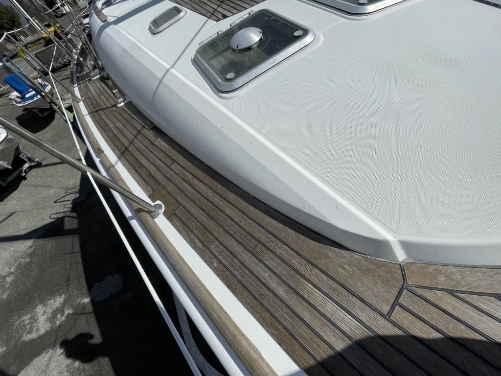 デッキ上は操船席やキャビンからマストあたりまでカバーを掛けて保管されておりますが、ここ数年は全く使用されておらず、汚れやチークの劣化が見られます。