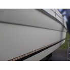 ハルにみられる黒い汚れは、マリーナの桟橋のクッションに使われているタイヤの汚れです。