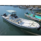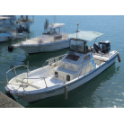 23フィートの細身な船体に、ヤマハ4ストローク80馬力と、予備エンジンを搭載しています。