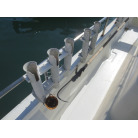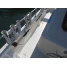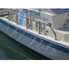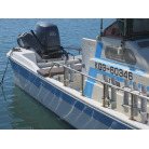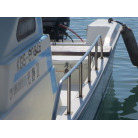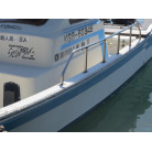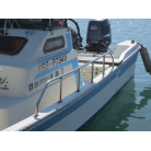 23フィートウォークアラウンドデッキのデッキは、適所にレールの増設や船首部分には乗降時に掴まる、棒状の手摺りが艤装されています。