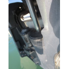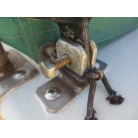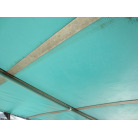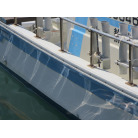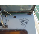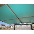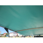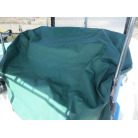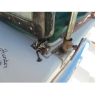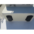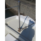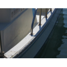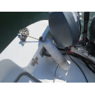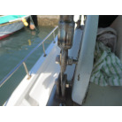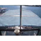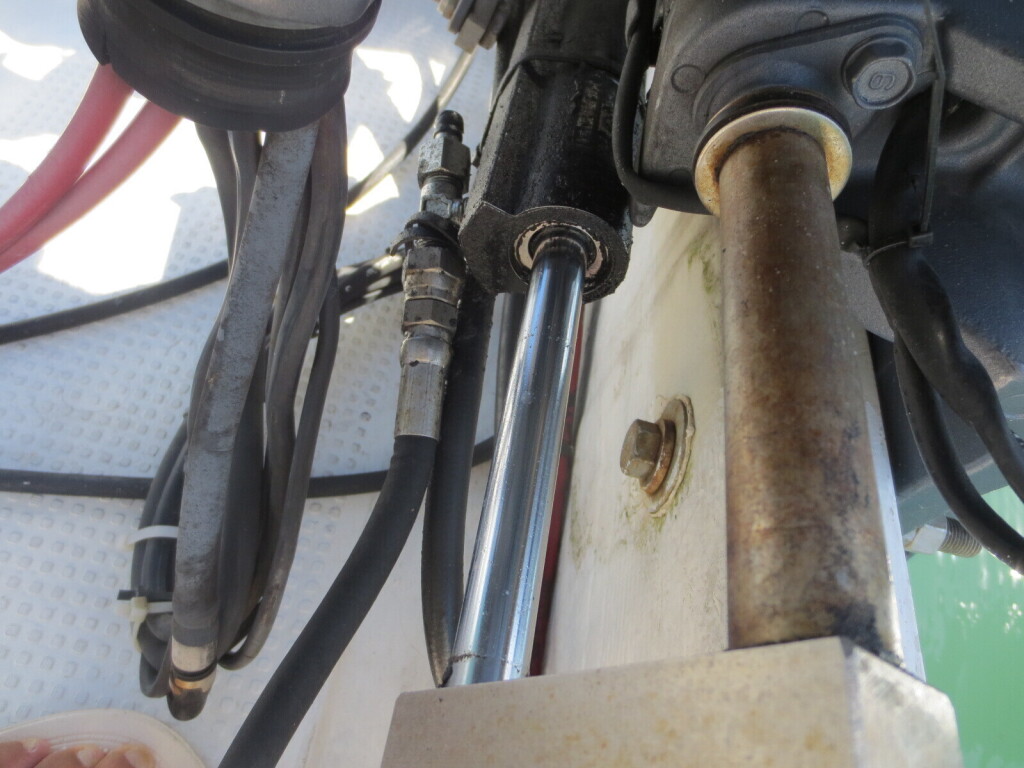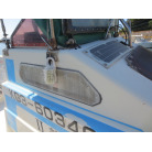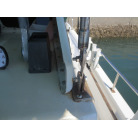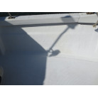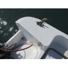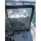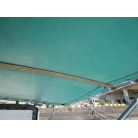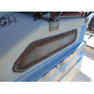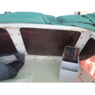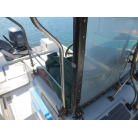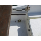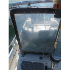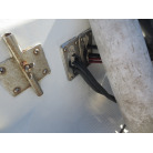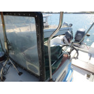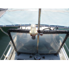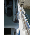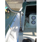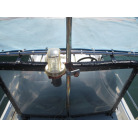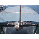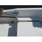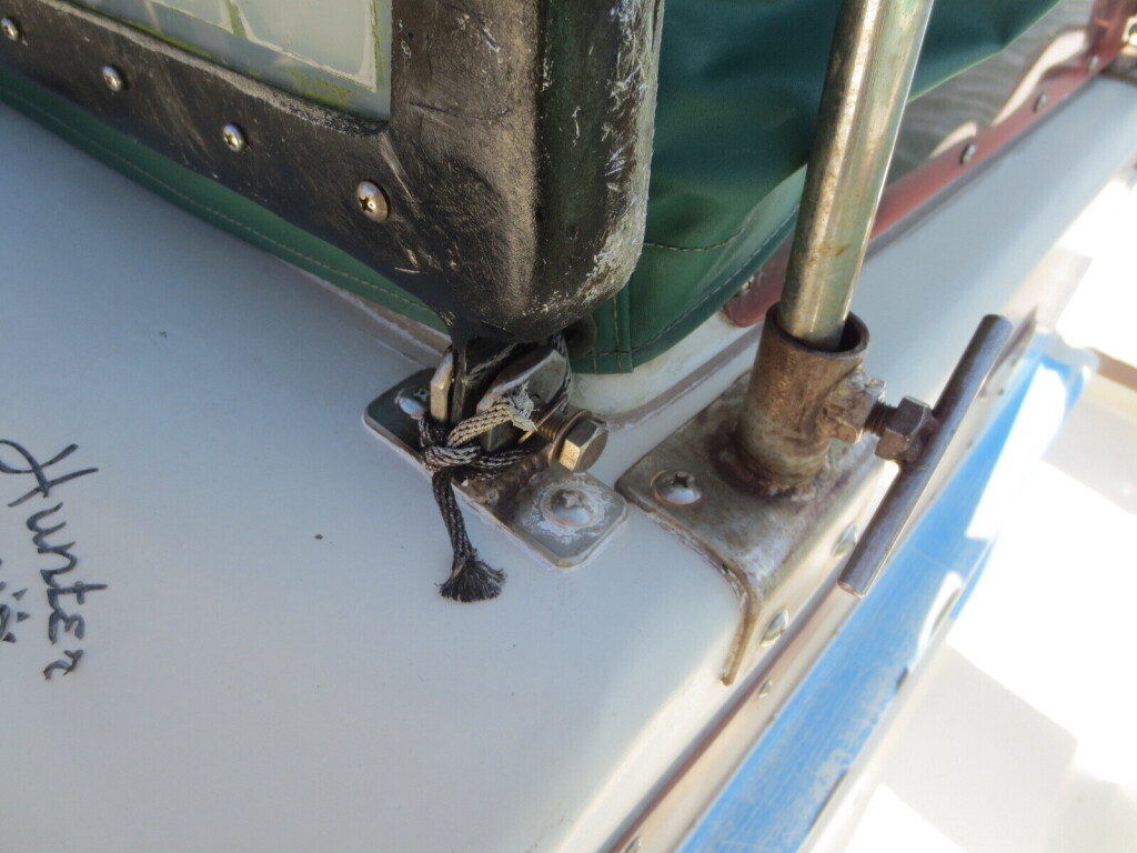 以前のオーナー様からの物ですが、オーニングのフレームにはヒンジが設けられ可倒式になっている為、橋脚下等の高さの無い河川域等の航行も可能な造りとなっています。
