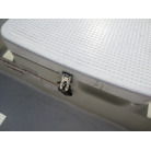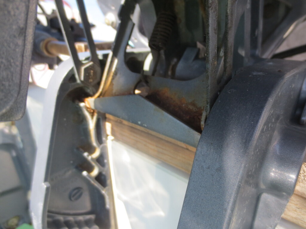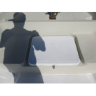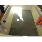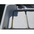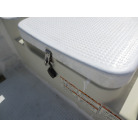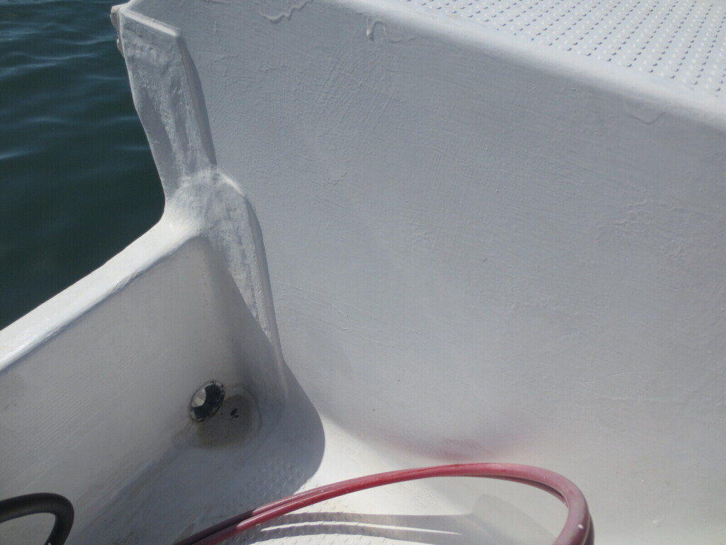 この年式のヤマハ艇には見られる現象です、イケスや床下収納の蓋の造りが薄い為、反りが見られますが船体のデッキ自体は一見したところ、軟化した箇所もありません。