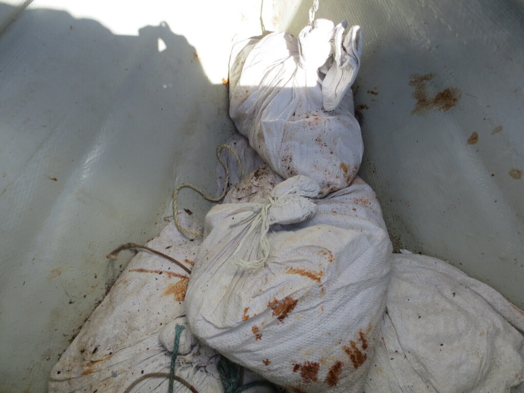 エンジンの重さで航行中に船首が上がるのを防ぐために、船首ハッチ内には砂袋が積まれていました。
