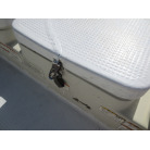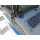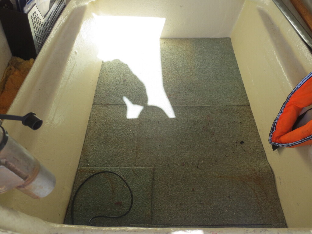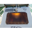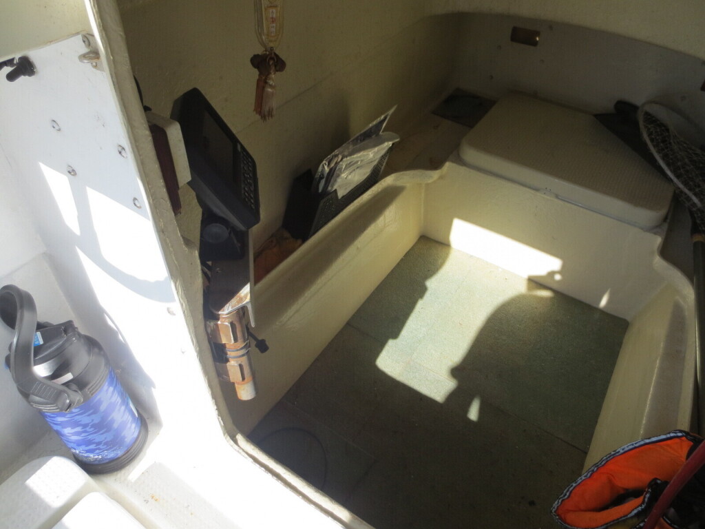 船室部のハッチ内側にホンデックスGPS魚探が、特注ブラケットにより装備されています。このGPS魚探は最近購入したそうで、綺麗なコンディションでした。アワーメーターはこの数字はありえないので、恐らく故障をしているのかと思います。詳しくは下見の際にご確認をお願い致します。
