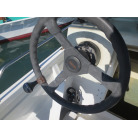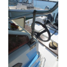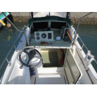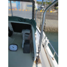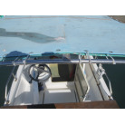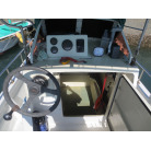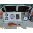 風雨を凌げる大き目のオーニングが覆う操船席部分は、航海計器のみのシンプルな造りです。
