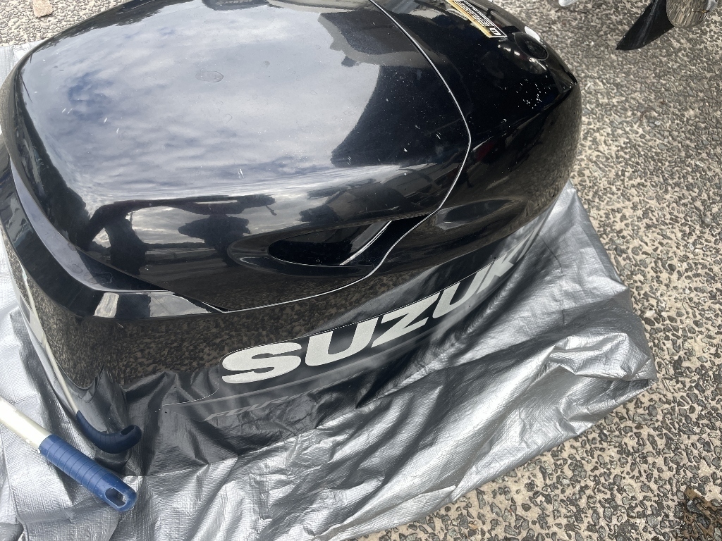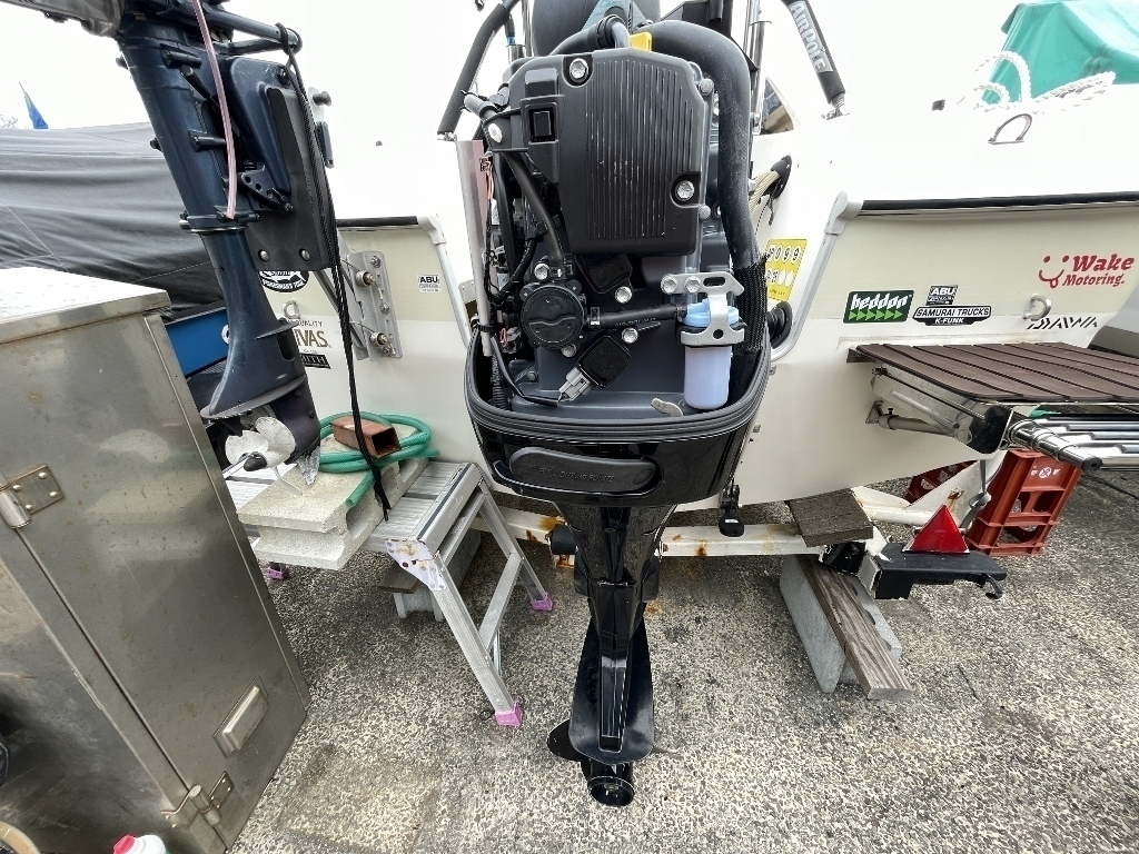 この艇のエンジンは、前オーナーさんがスズキ4ストローク船外機 DF-60Aに載せ替えています。