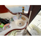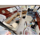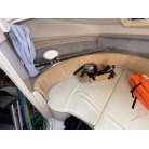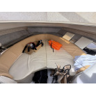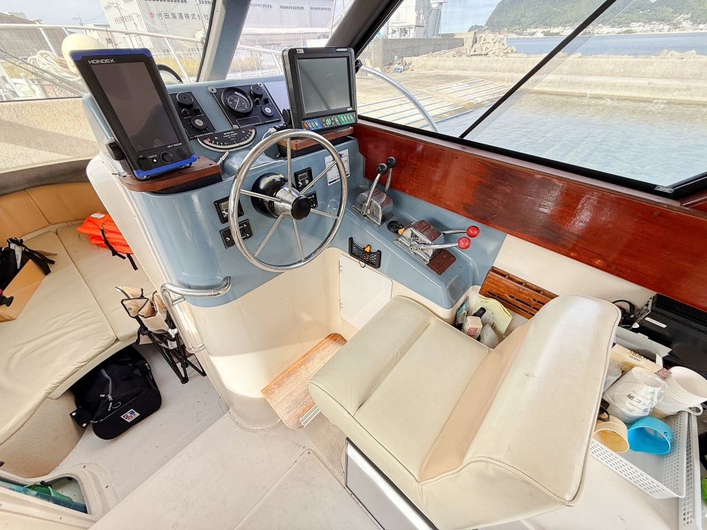 同クラスのプレジャーボートよりも幅が広く、その分余裕のある室内やアフトデッキでパーティをしたり、大型クーラーボックスを持ち込んで釣りの遠征に行ったりと様々なマリンレジャーをゆったり優雅に楽しむことができると思います。